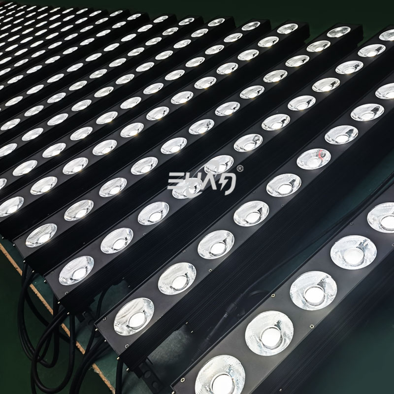 The entire body is designed for effective heat dissipation, allowing it to remain fully illuminated continuously. It features an integrated autonomous program and directly supports DMX512 signals.